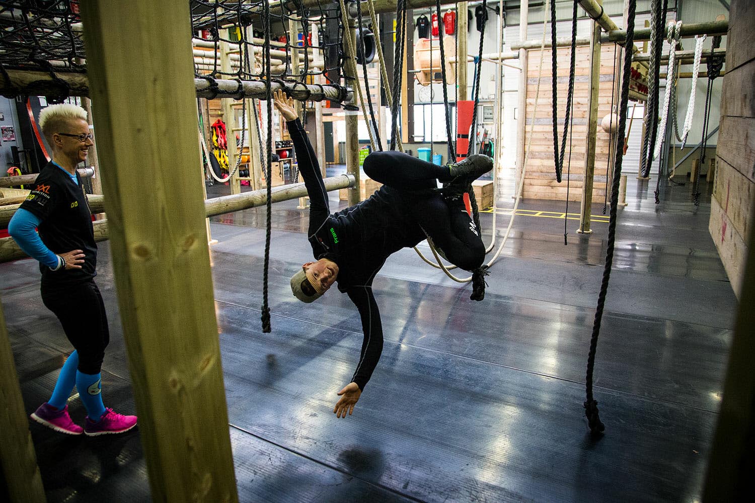 Es ist durchaus möglich, sich durch die Halle zu bewegen, ohne den Boden zu berühren – das gleiche gilt auch für den Außenbereich. Das ist jedoch kaum zu schaffen – außer man ist so fit wie Frans M., der wie Spiderman durch sein Reich hangelt!