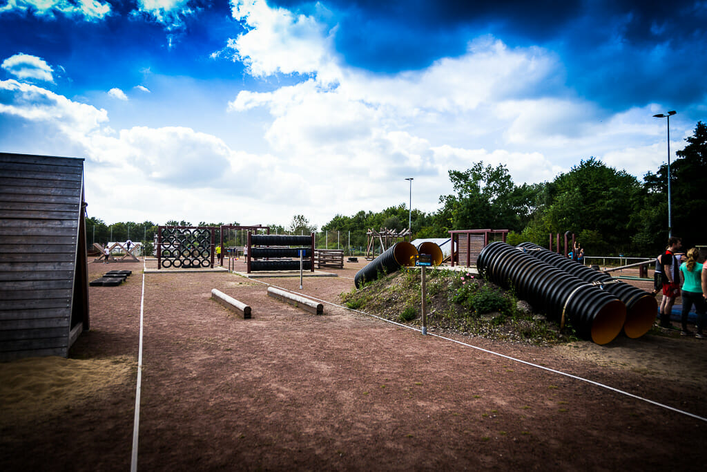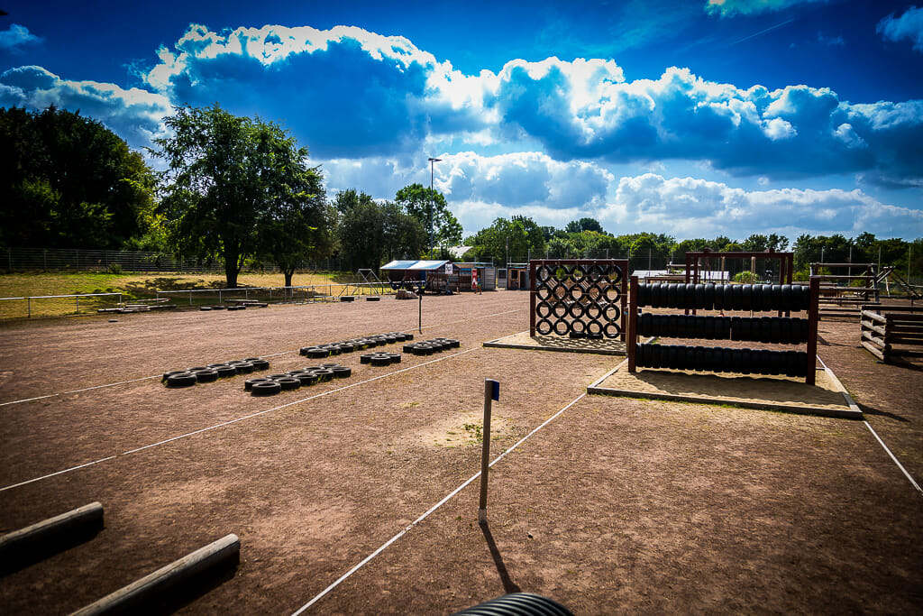 Betritt man den Platz, so scheint es, als wenn der ganze Platz nur aus Hindernissen/ Trainingsgeräte besteht, aber beim genaueren hin sehen sieht man schnell, das dahinter ein System steckt.