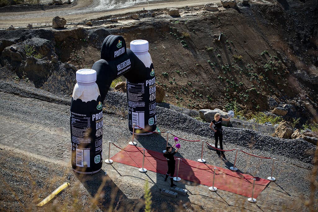 Der seitliche Eingang und die Anmeldung/ CheckkIn war wie gehabt am gleichen Ort und so ging es danach einmal (halb) rund um den Berg, um auf das Eventgelände zu kommen. Vorbei an einem der wenigen Hindernisse die für Besucher zu sehen ist ging es auf den Platz wo der Start, das Ziel und das ganze DrumHerum ablief.