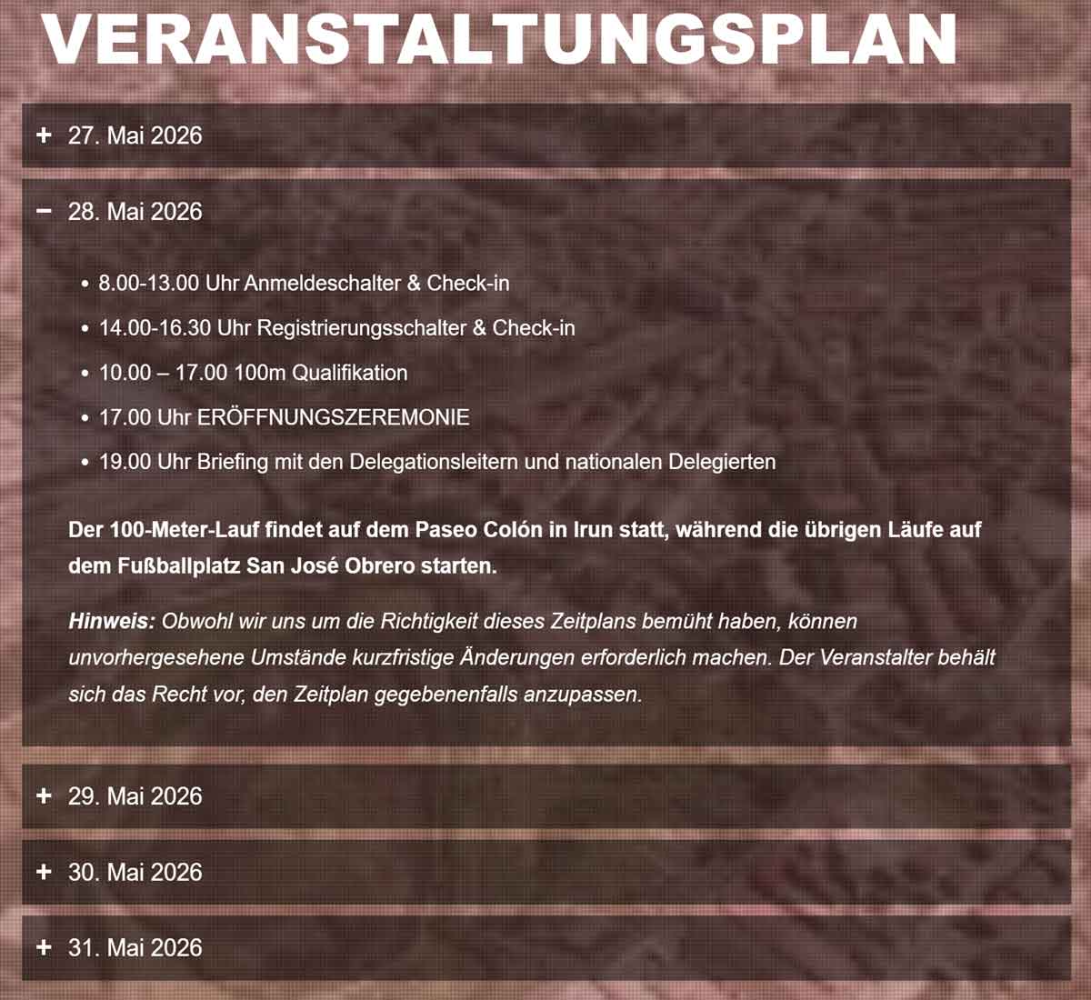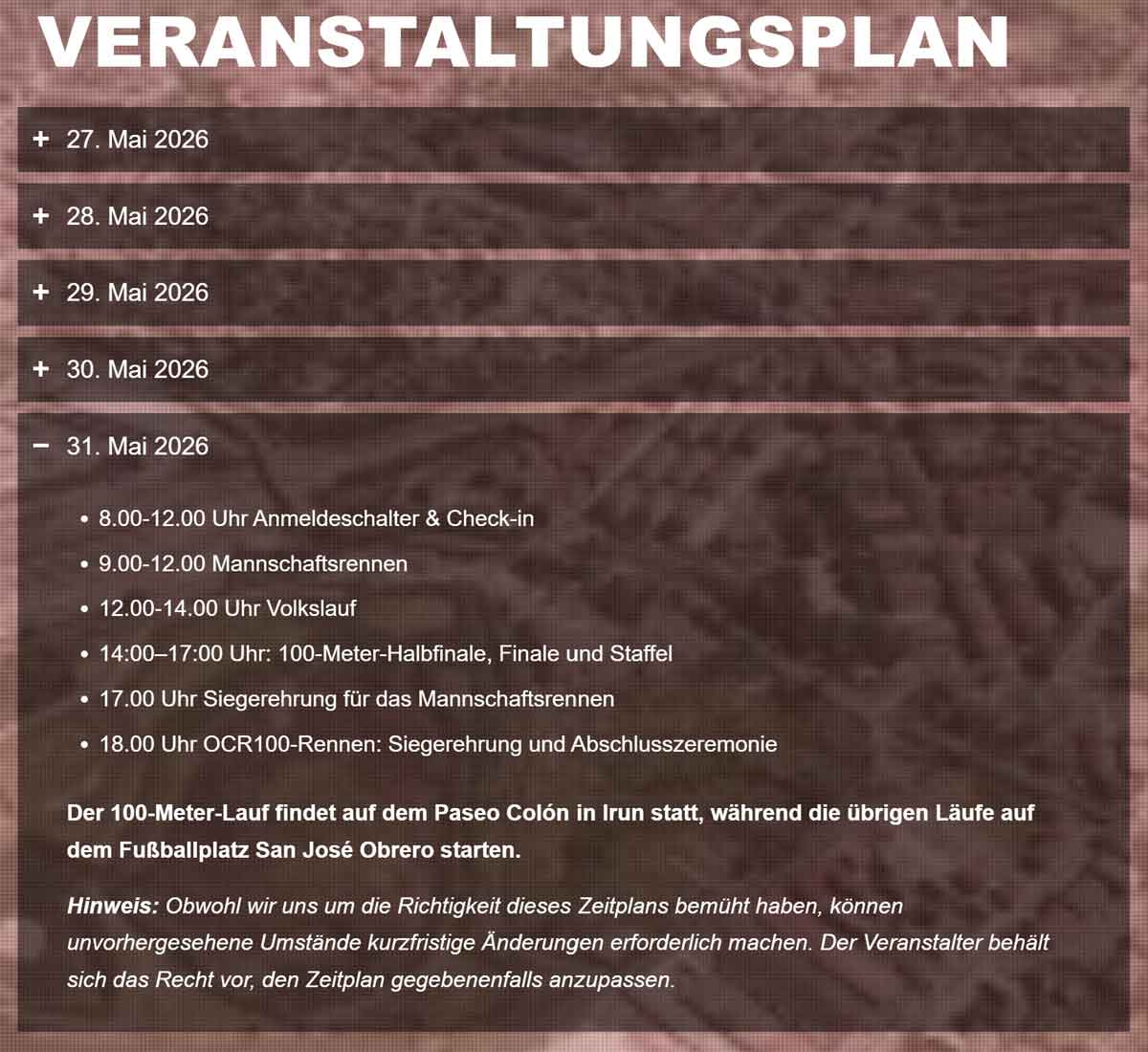 OCR Europameisterschaft IRUN-Spanien 2026 - Zeitraum