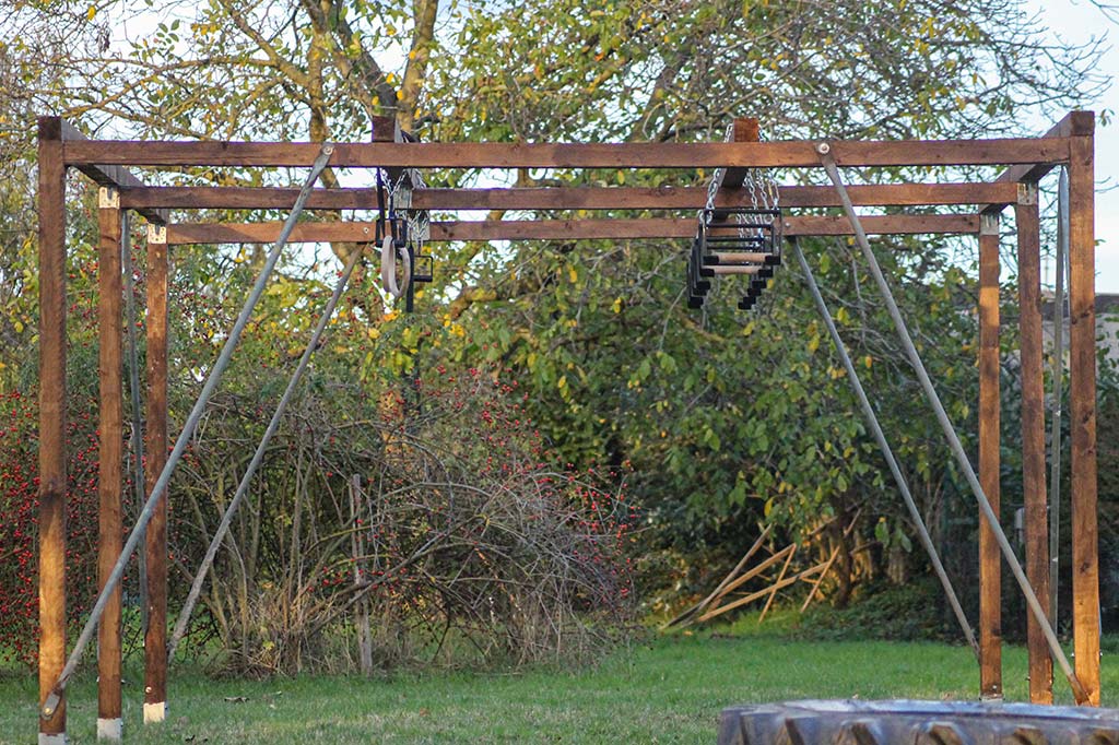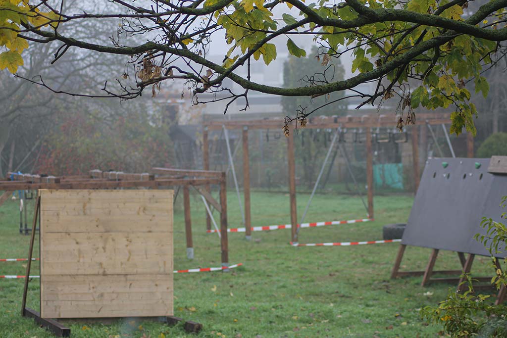 Fertiggestellt haben wir eine Eskaladierwand, ein Low-Rig, ein High-Rig, ein Pegboard, eine Z-Wall und Olympus (weitere Hindernisse werden folgen). Nach und nach werden wir unser Trainingsgelände immer weiterentwickeln und somit natürlich auch weiter ausbauen.